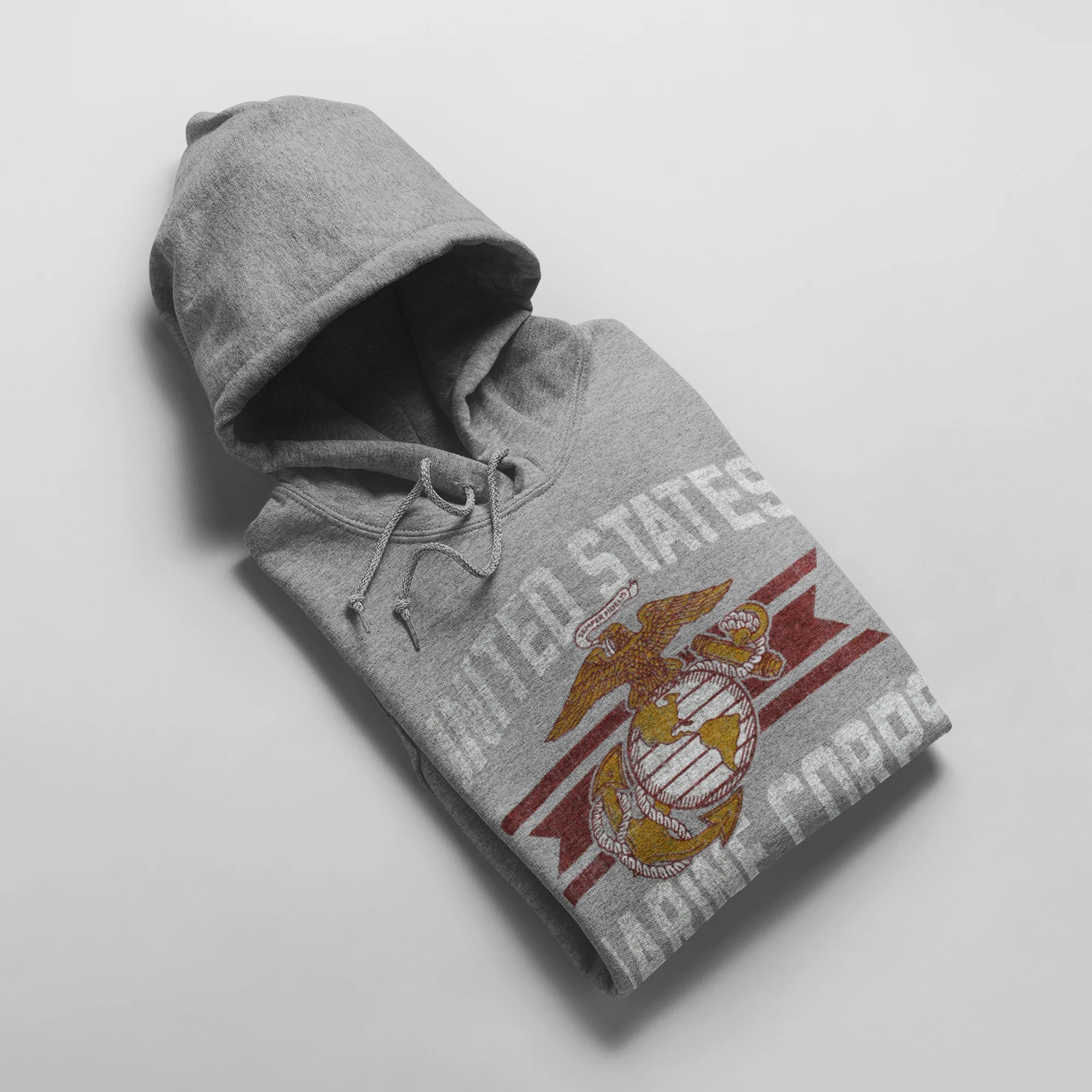 "Were taking you back to the good old days of USMC sweatshirts with this vintage-inspired Marines Hoodie in Grey, which sports distressed graphics.