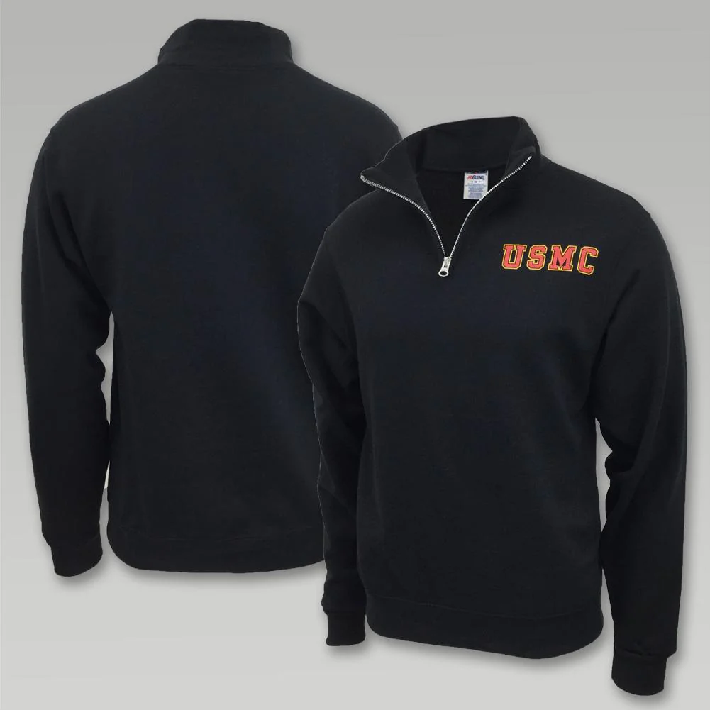 "Stay comfy and cozy with a USMC sweatshirt, like this USMC 1/4-Zip Sweatshirt in Black!